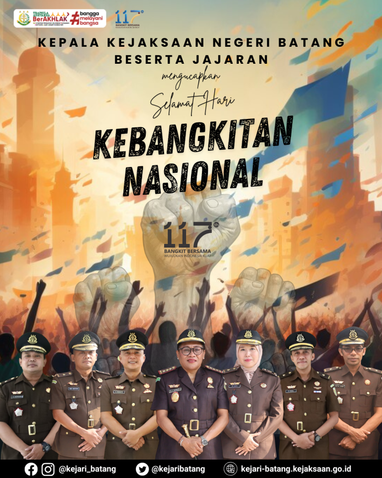 Kepala Kejaksaan Negeri Batang Beserta Jajaran mengucapkan Selamat Hari Kebangkitan Nasional Ke-117 Tahun 2025....
