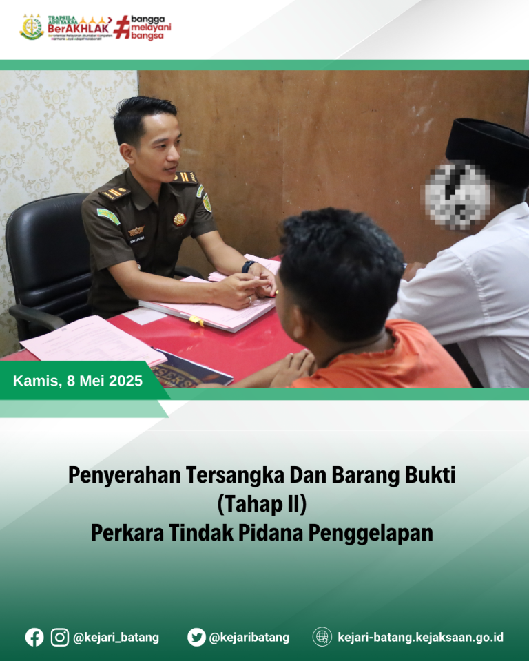 Kamis, 8 Mei 2025 | Kejaksaan Negeri Batang Telah dilaksanakan Penyerahan Tersangka dan Barang...