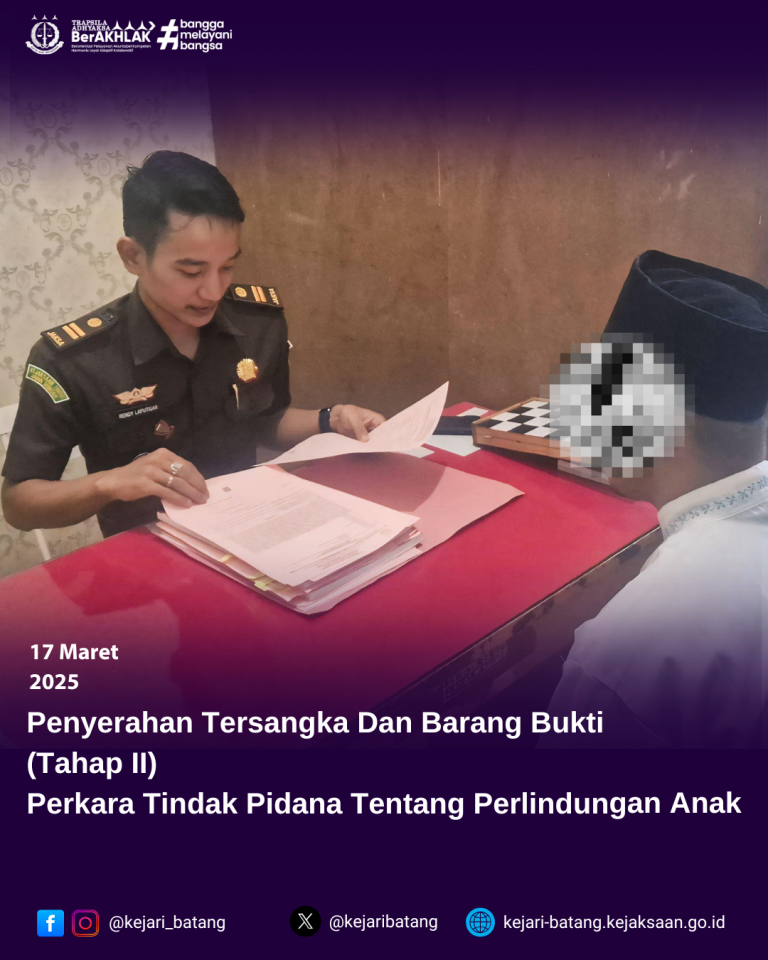 Bahwa pada hari Senin, 17 Maret 2025 bertempat di Kejaksaan Negeri Batang telah berlangsung...