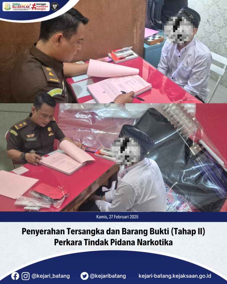 Bahwa pada hari Kamis, 27 Februari 2025 bertempat di Kejaksaan Negeri Batang telah berlangsung...