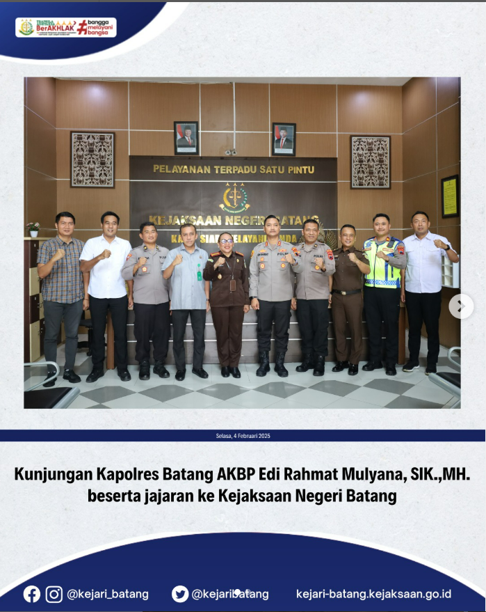 Bahwa pada hari Selasa, 4 Februari 2025 Kepala Kejaksaan Negeri Batang, Dr. Efi Paulin...