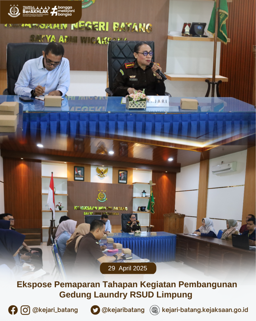 Bahwa pada hari Selasa tanggal 29 April 2025 bertempat di Aula Kejaksaan Negeri Batang telah dilaksanakan Ekspose Pemaparan Tahapan Kegiatan Pembangunan Gedung Laundry RSUD Limpung