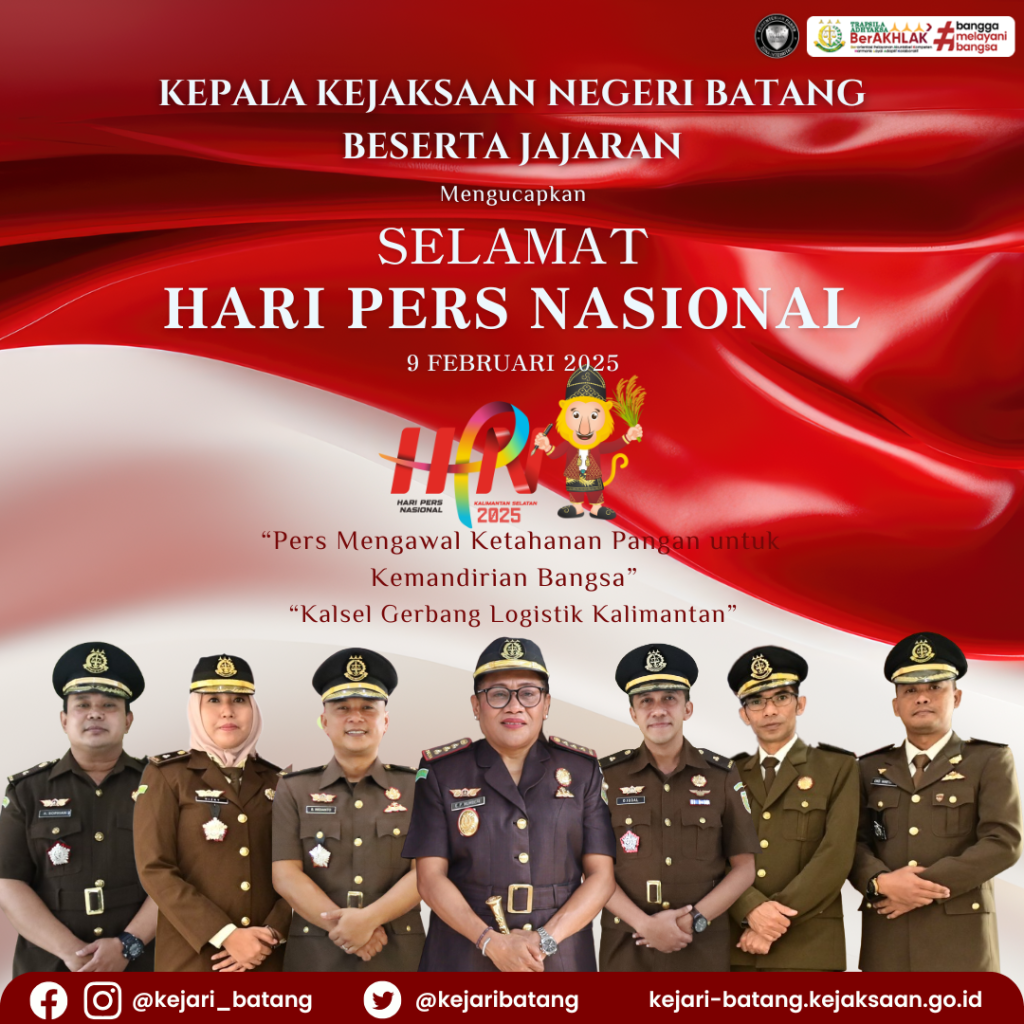 Kepala Kejaksaan Negeri Batang beserta Jajaran mengucapkan Selamat Hari Pers Nasional 9 Februari 2025.
