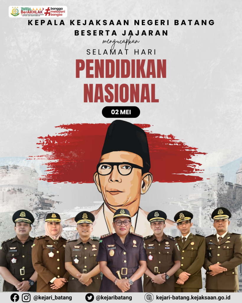 Kepala Kejaksaan Negeri Batang beserta jajaran mengucapkan Selamat Hari Pendidikan Nasional 2 Mei 2025.