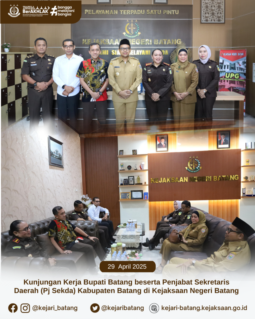 Dengan Kunjungan tersebut diharapkan dapat memperkuat hubungan antara Pemerintah Kabupaten Batang dengan Kejaksaan Negeri Batang untuk mendorong terciptanya sinergi yang lebih baik dalam pemerintahan dan pembangunan daerah khususnya dalam Penegakan Hukum.