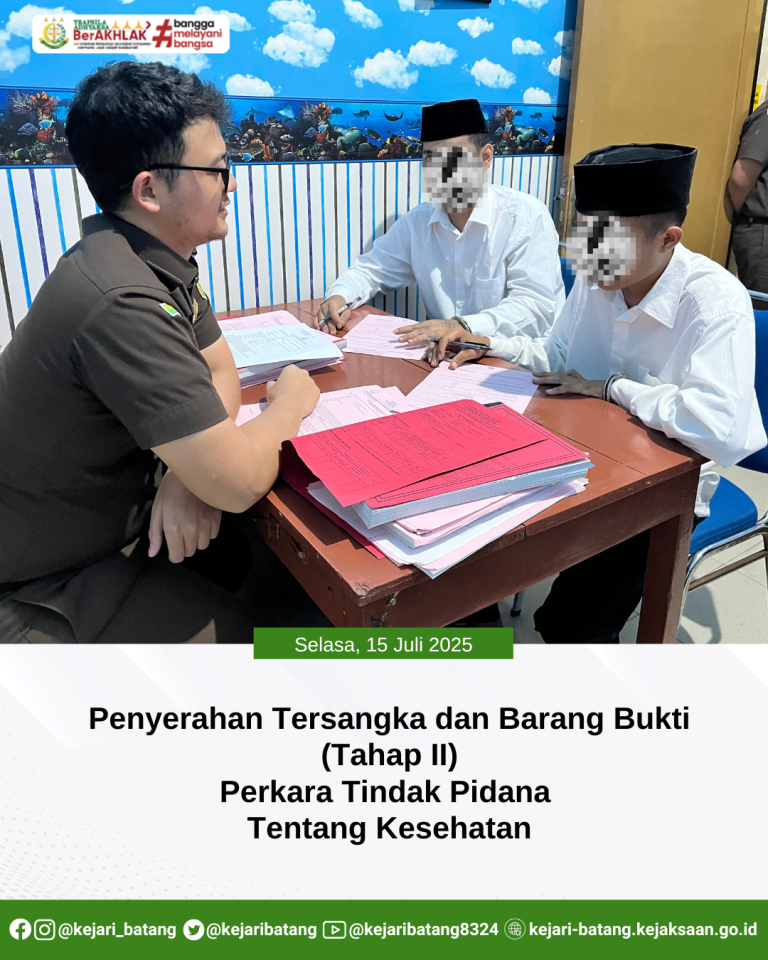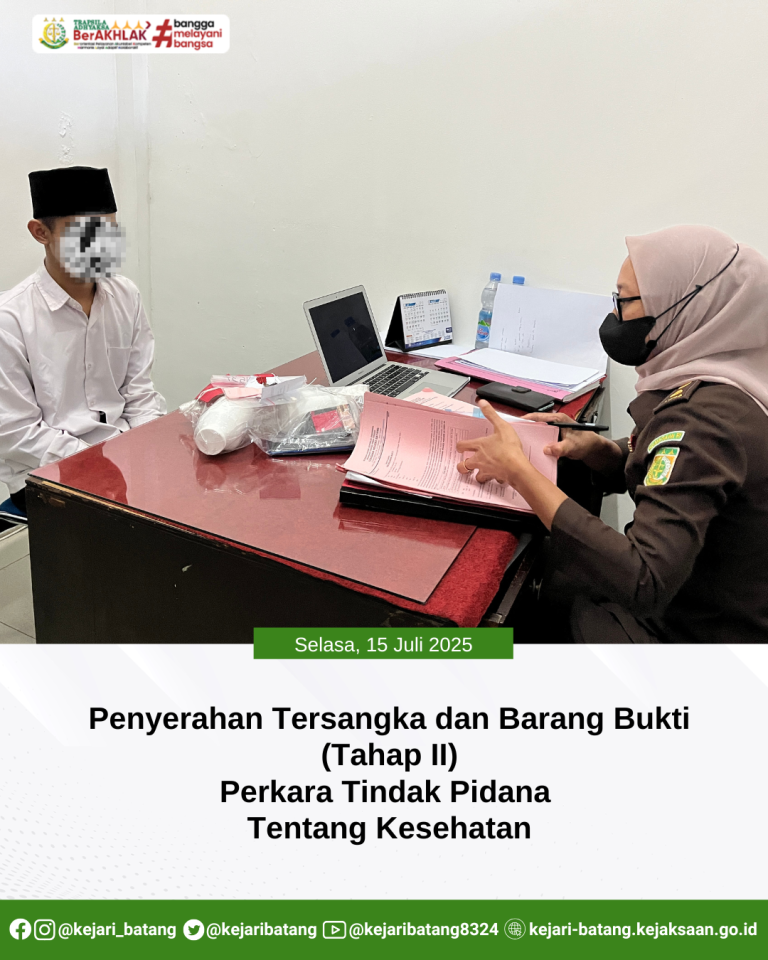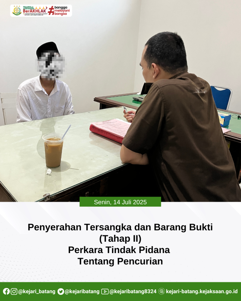 Selasa, 15 Juli 2025 | Kejaksaan Negeri Batang Telah dilaksanakan Penyerahan Tersangka Dan Barang...