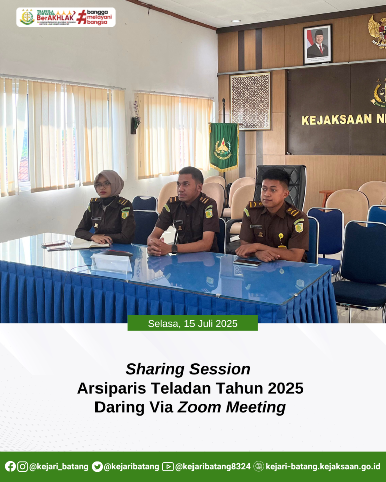 Selasa, 15 Juli 2025, Staff Pembinaan Kejaksaan Negeri Batang mengikuti Sharing Session Arsiparis Teladan...