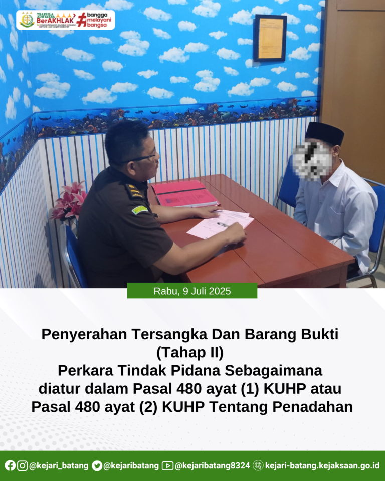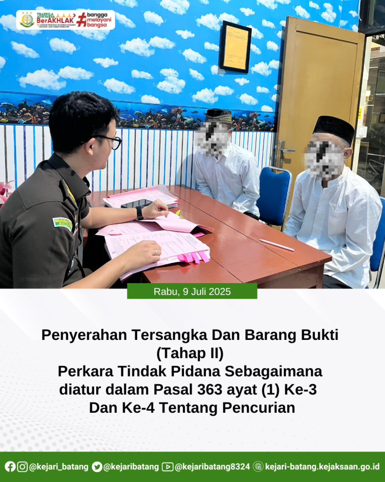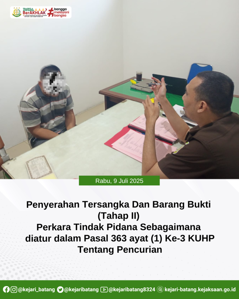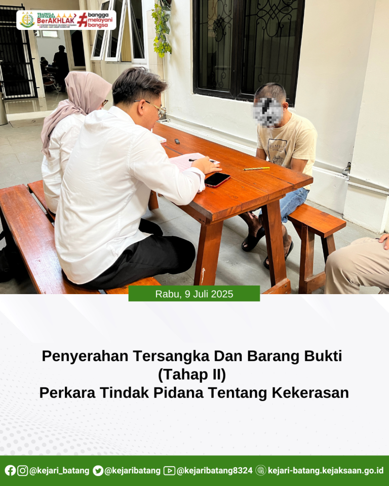 Rabu, 9 Juli 2025 | Kejaksaan Negeri Batang Telah dilaksanakan Penyerahan Tersangka Dan Barang...
