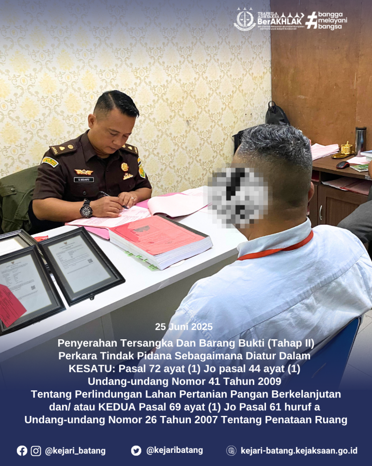 Rabu, 25 Juni 2025 | Kejaksaan Negeri Batang Telah dilaksanakan Penyerahan Tersangka dan Barang...