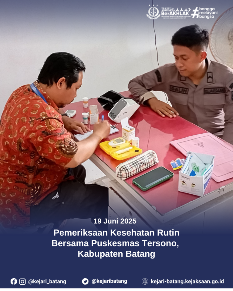 Batang, Kamis 19 Juni 2025 — Bertempat di Ruang Kesehatan Kejaksaan Negeri Batang, telah...