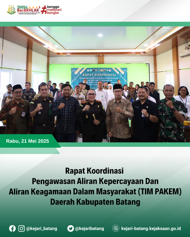Bahwa pada hari Rabu, 21 Mei 2025 bertempat di Aula Kejaksaan Negeri Batang telah...