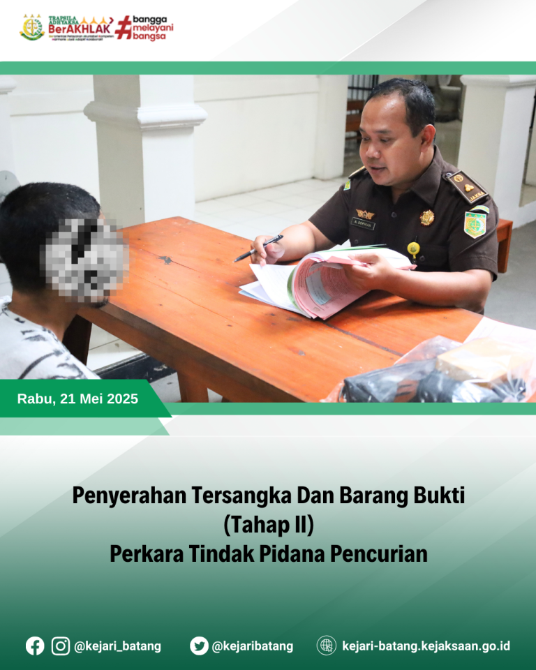 Pada hari Rabu, 21 Mei 2025 , bertempat di Kantor Kejaksaan Negeri Batang, Kepala...
