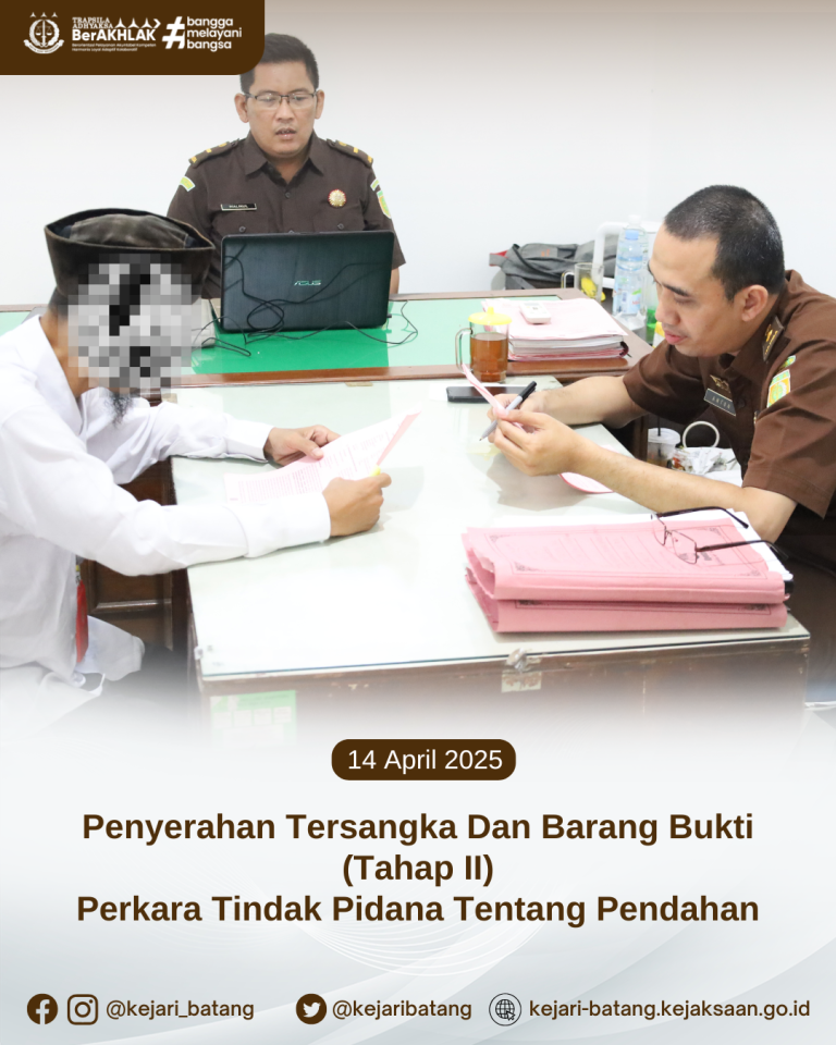 Bahwa pada hari Senin. 14 April 2025 bertempat di Kejaksaan Negeri Batang telah berlangsung...