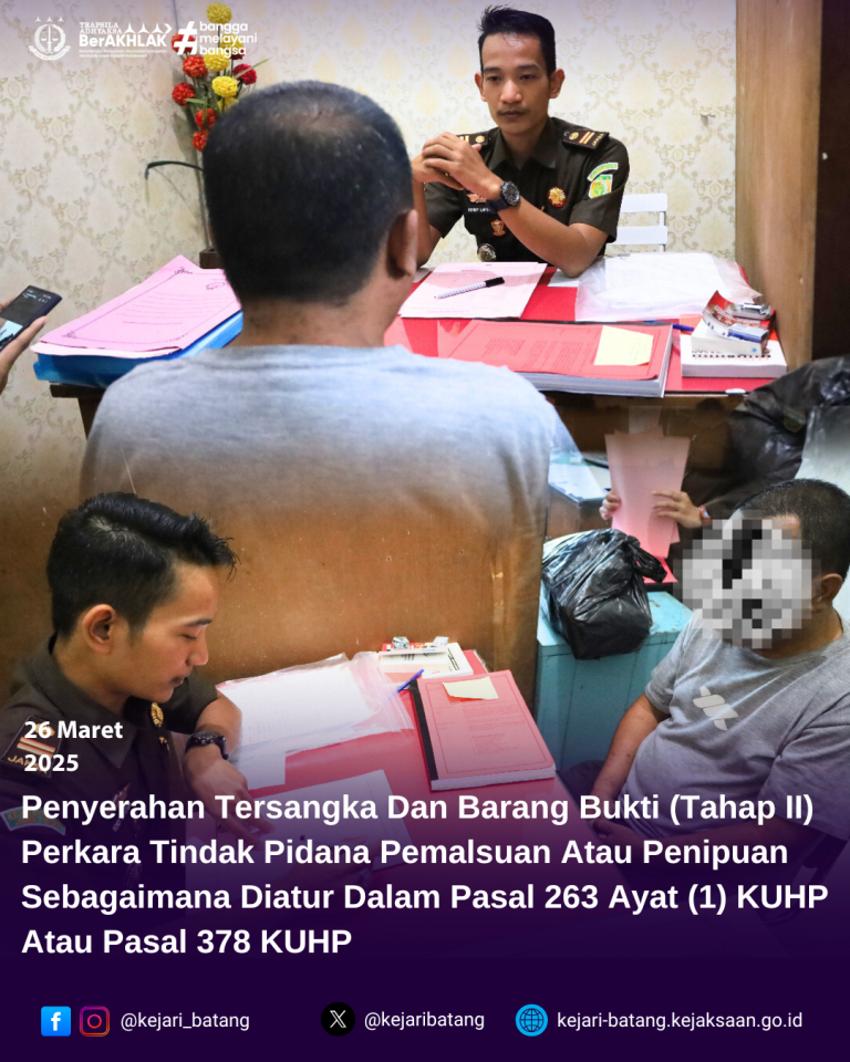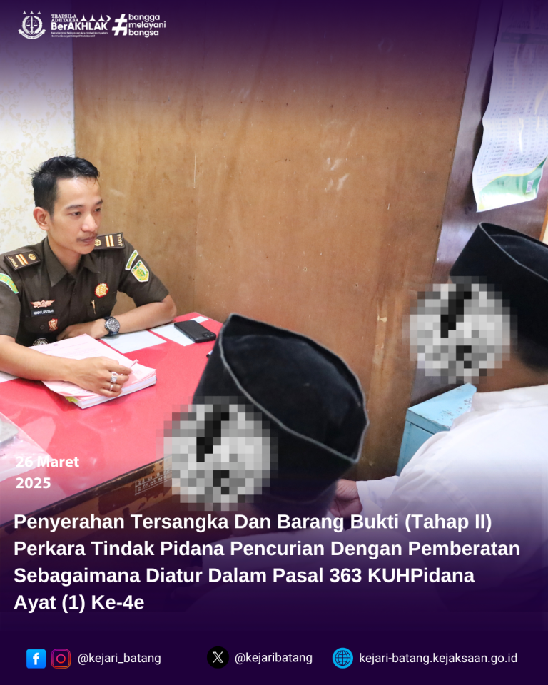 Bahwa pada hari Rabu, 26 Maret 2025 bertempat di Kejaksaan Negeri Batang telah berlangsung...