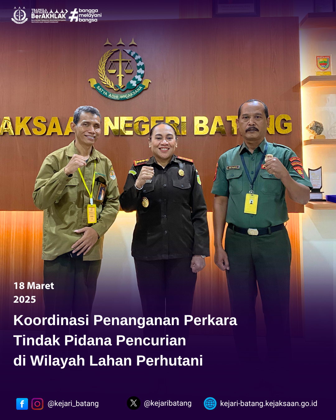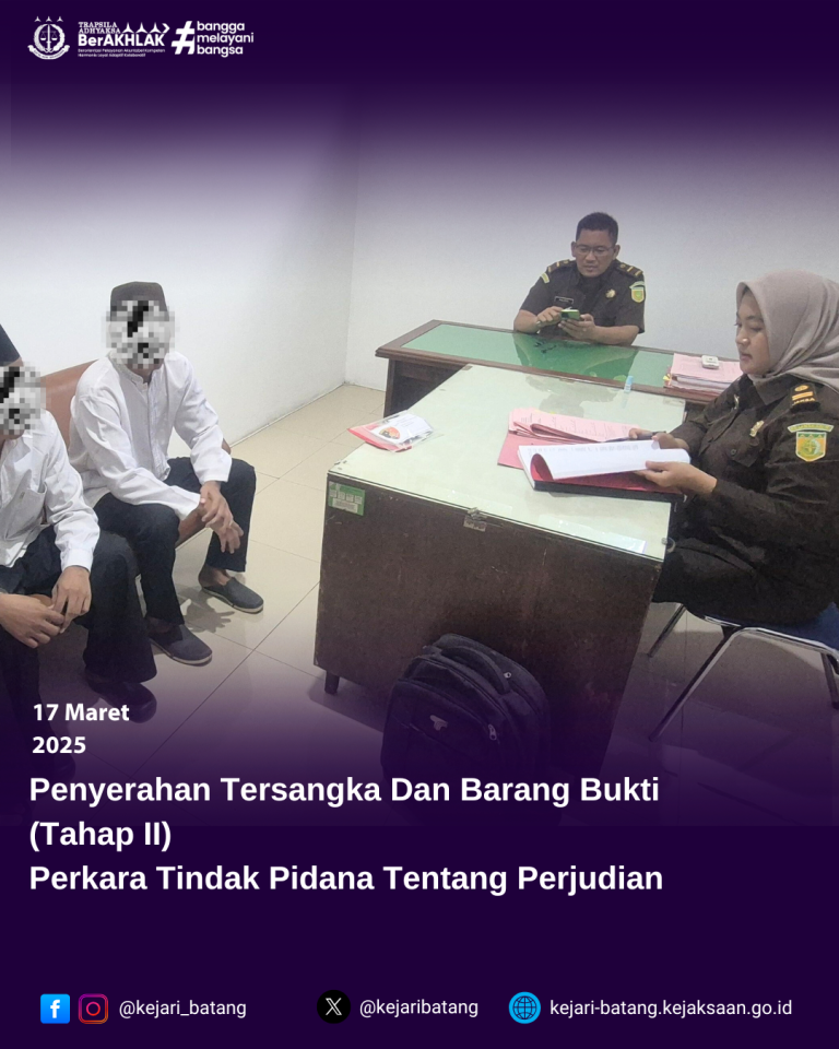 Bahwa pada hari Rabu, 19 Maret 2025 bertempat di Kejaksaan Negeri Batang telah berlangsung...