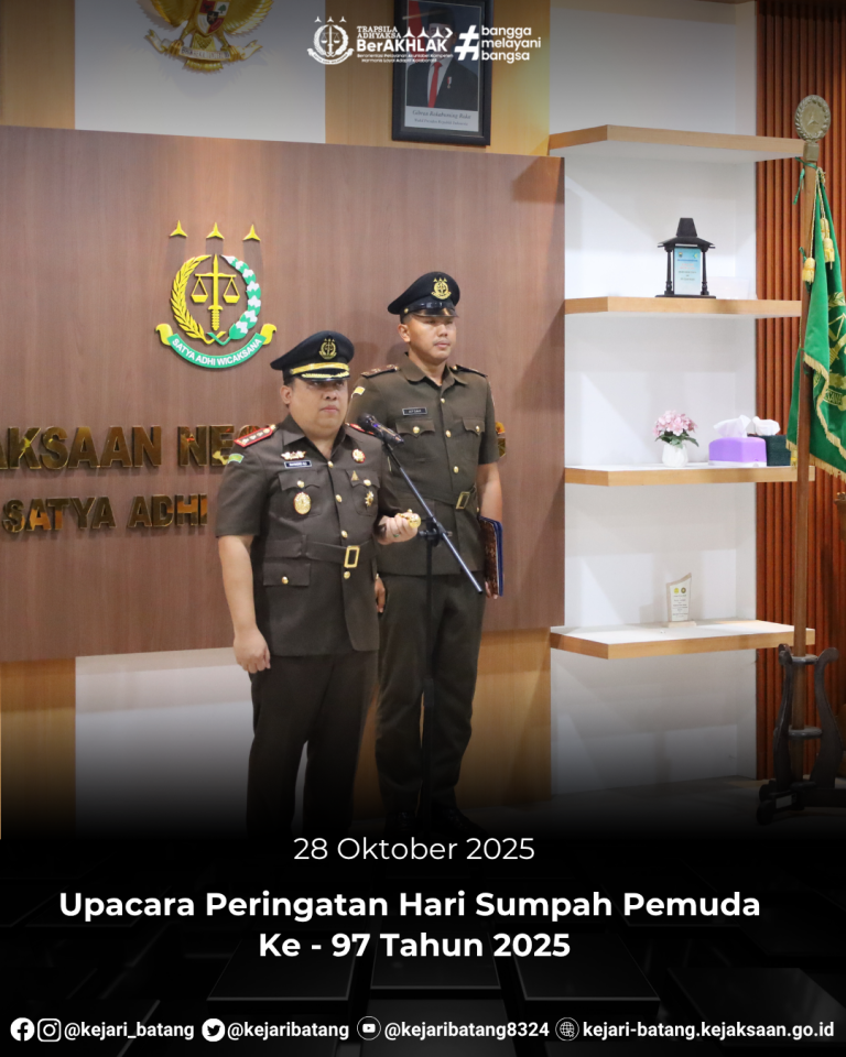 Kepala Kejaksaan Negeri Batang beserta seluruh jajaran mengucapkan “Selamat Hari Sumpah Pemuda ke-97 Tahun...