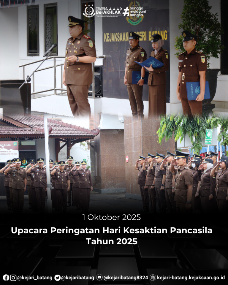 Kepala Kejaksaan Negeri Batang beserta seluruh jajaran mengucapkan:“Selamat Hari Kesaktian Pancasila” Mari kita jadikan...