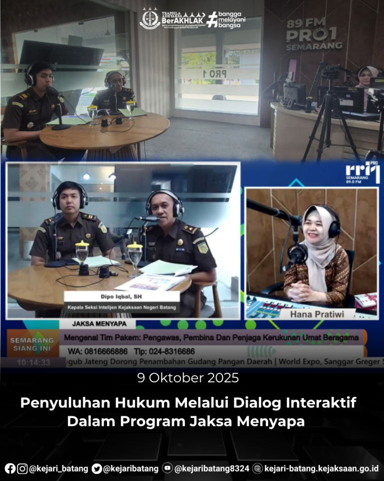 Pada hari Kamis tanggal 9 Oktober 2025, Kejaksaan Negeri Batang, bertempat di RRI Pro...