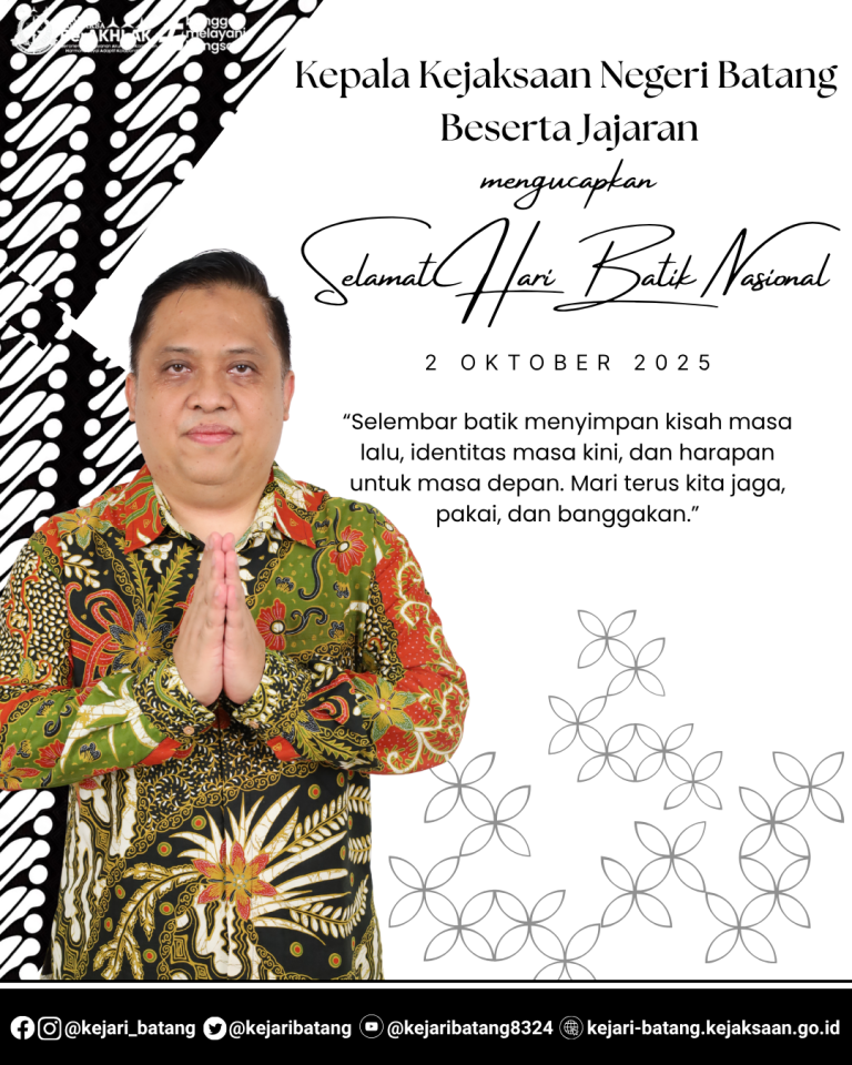 Kepala Kejaksaan Negeri Batang, Dr. Raymond Ali, S.H., M.H., beserta seluruh jajaran, mengucapkan: “Selamat...