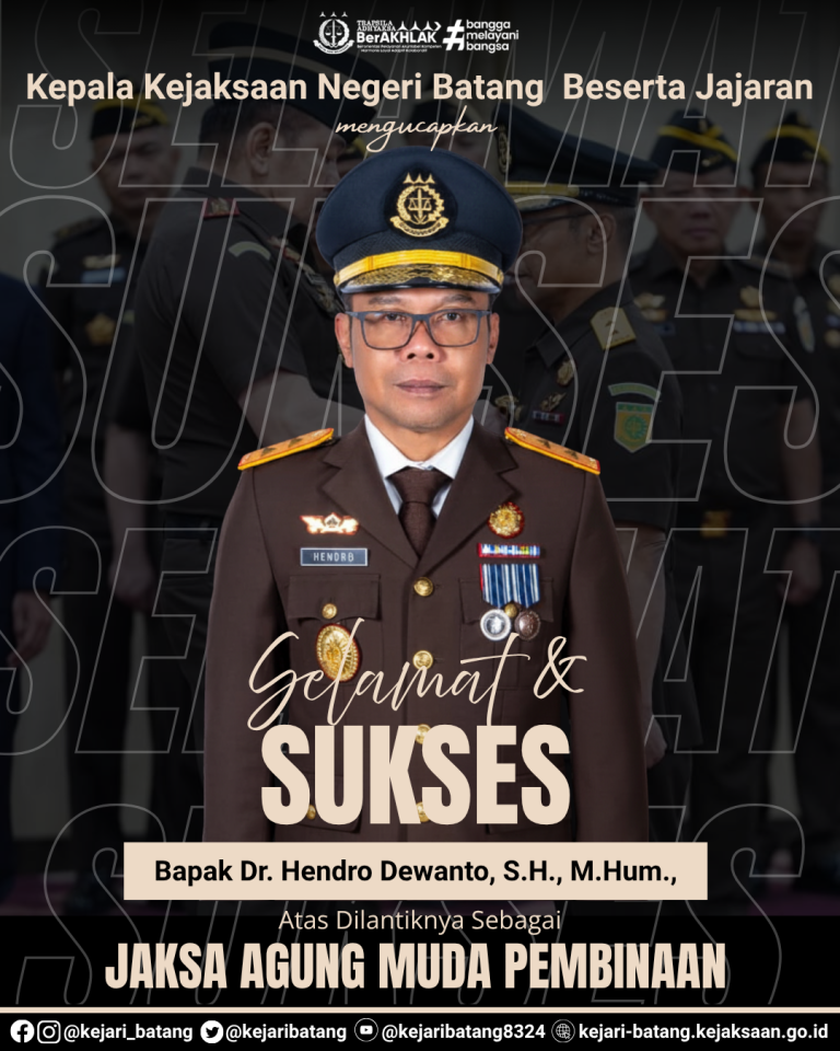 Kepala Kejaksaan Negeri Batang beserta seluruh jajaran mengucapkan “Selamat dan Sukses kepada Bapak Dr....