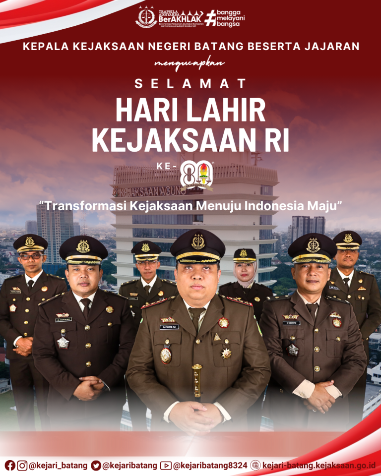 Kepala Kejaksaan Negeri Batang beserta seluruh jajaran mengucapan selamat memperingati Hari Lahir Kejaksaan Republik...