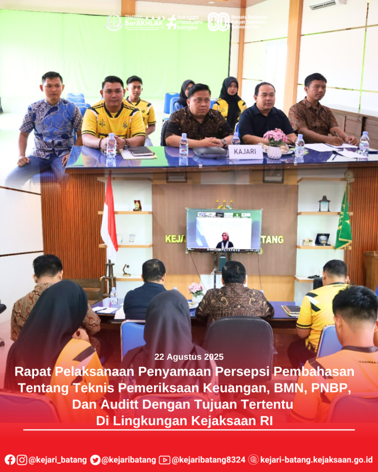 Pada hari Jumat, 22 Agustus 2025, bertempat di Aula Kejaksaan Negeri Batang, Kepala Kejaksaan...