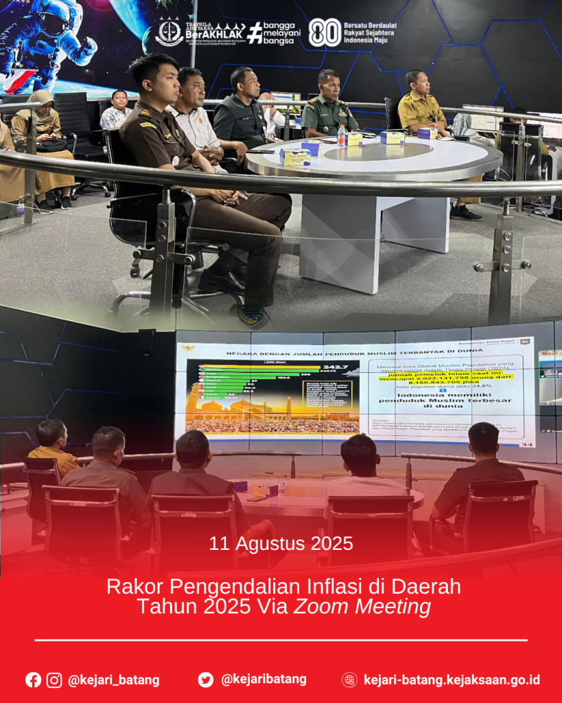 Batang – Pada hari Senin, 11 Agustus 2025, pukul 08.00, bertempat di Ruang Command Center Kabupaten Batang, Kepala Subseksi II Intelijen Kejaksaan Negeri Batang, Muhammad Saiful Tsani, S.H., M.H., telah menghadiri Undangan Rakor Pengendalian Inflasi di Daerah Tahun 2025